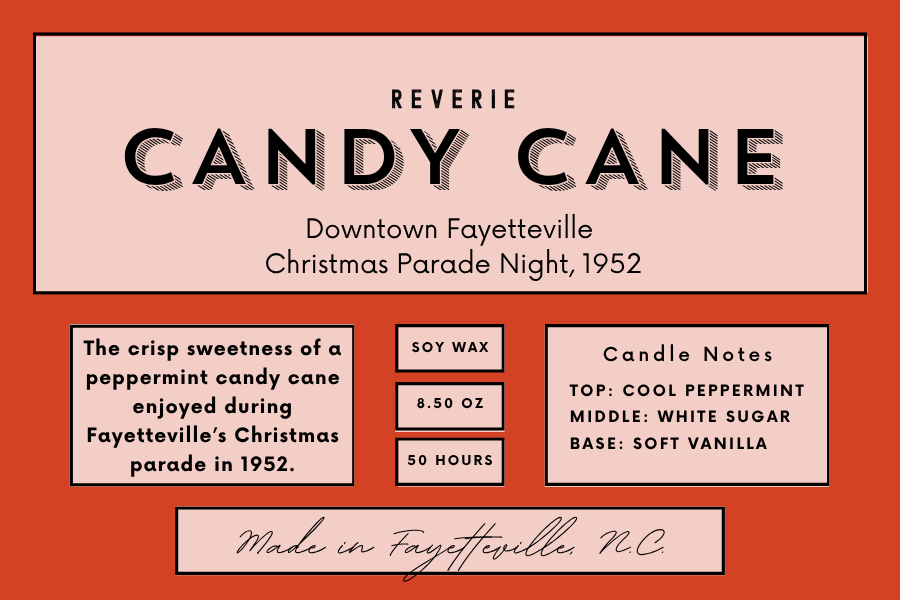 Candy Cane captures the joyful sweetness of Fayetteville’s 1952 Christmas parade — the hum of marching bands, children bundled in wool coats, and peppermint sticks handed out by smiling shopkeepers.
