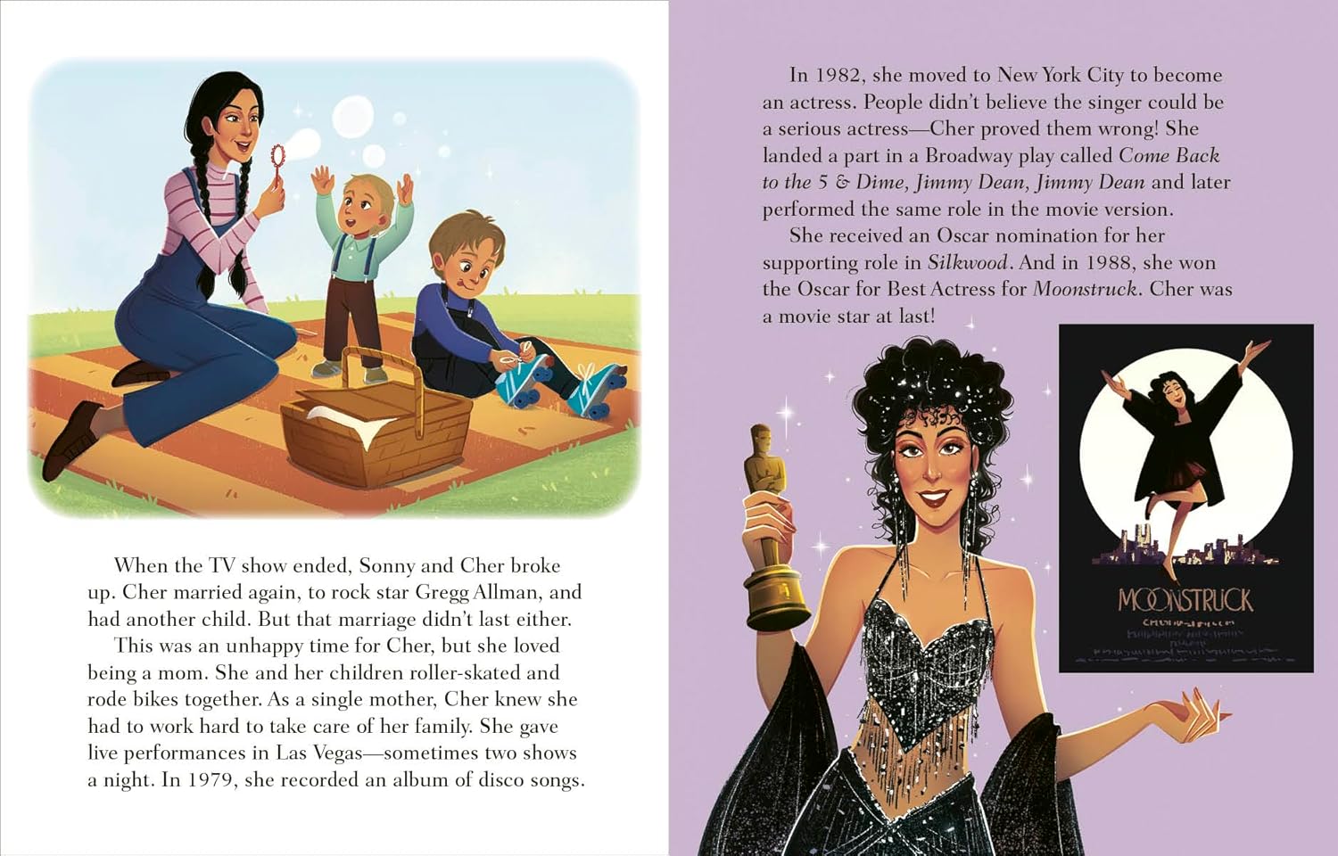 The Goddess of Pop's story comes to life in Cher: A Little Golden Book Biography—from her show business beginnings as part of the duo Sonny & Cher, to her solo success with hits like “Believe” and "If I Could Turn Back Time," to winning an Oscar for best actress. When you’re Cher, you’re not afraid to be your unique self!