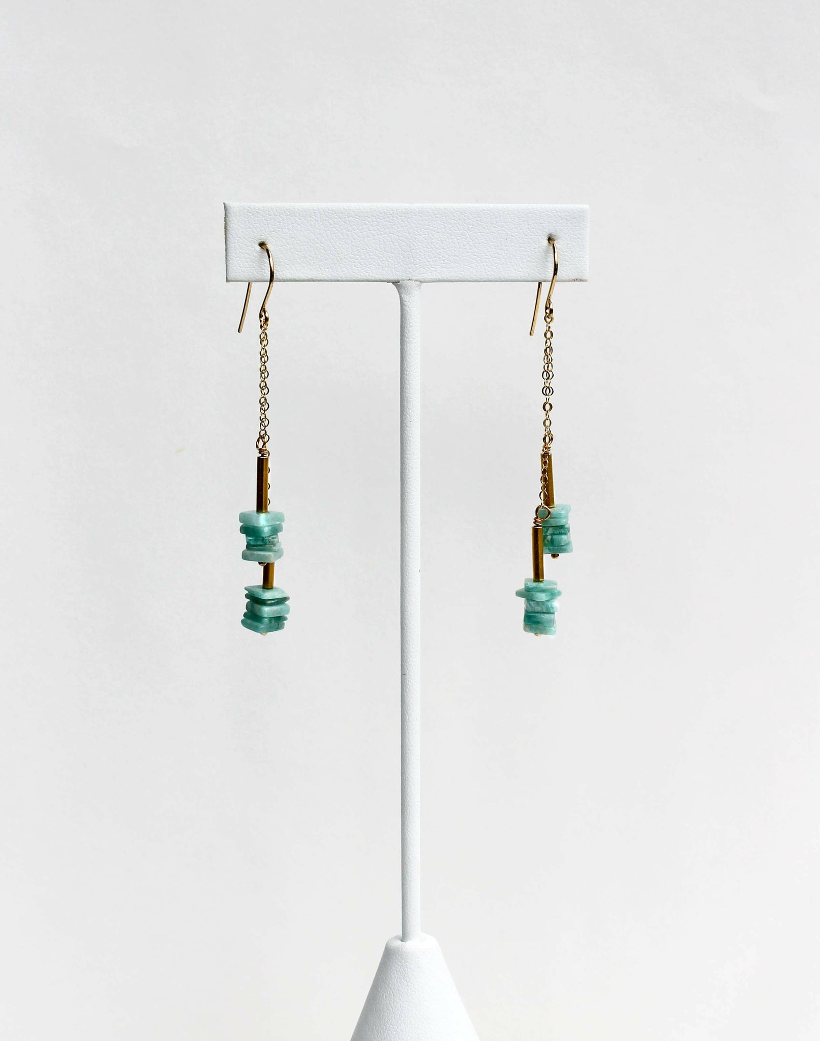 Square is hip again, especially in these swingy spring earrings. Great movement in these earrings. + Amazonite. 14K Gold Fill Ear Wire. 14K Gold Plate Bead. + Length: 2.75 inch. Dangle Earrings • Amazonite Earrings • Blue Green • Spring Jewelry • Long Drop Earrings