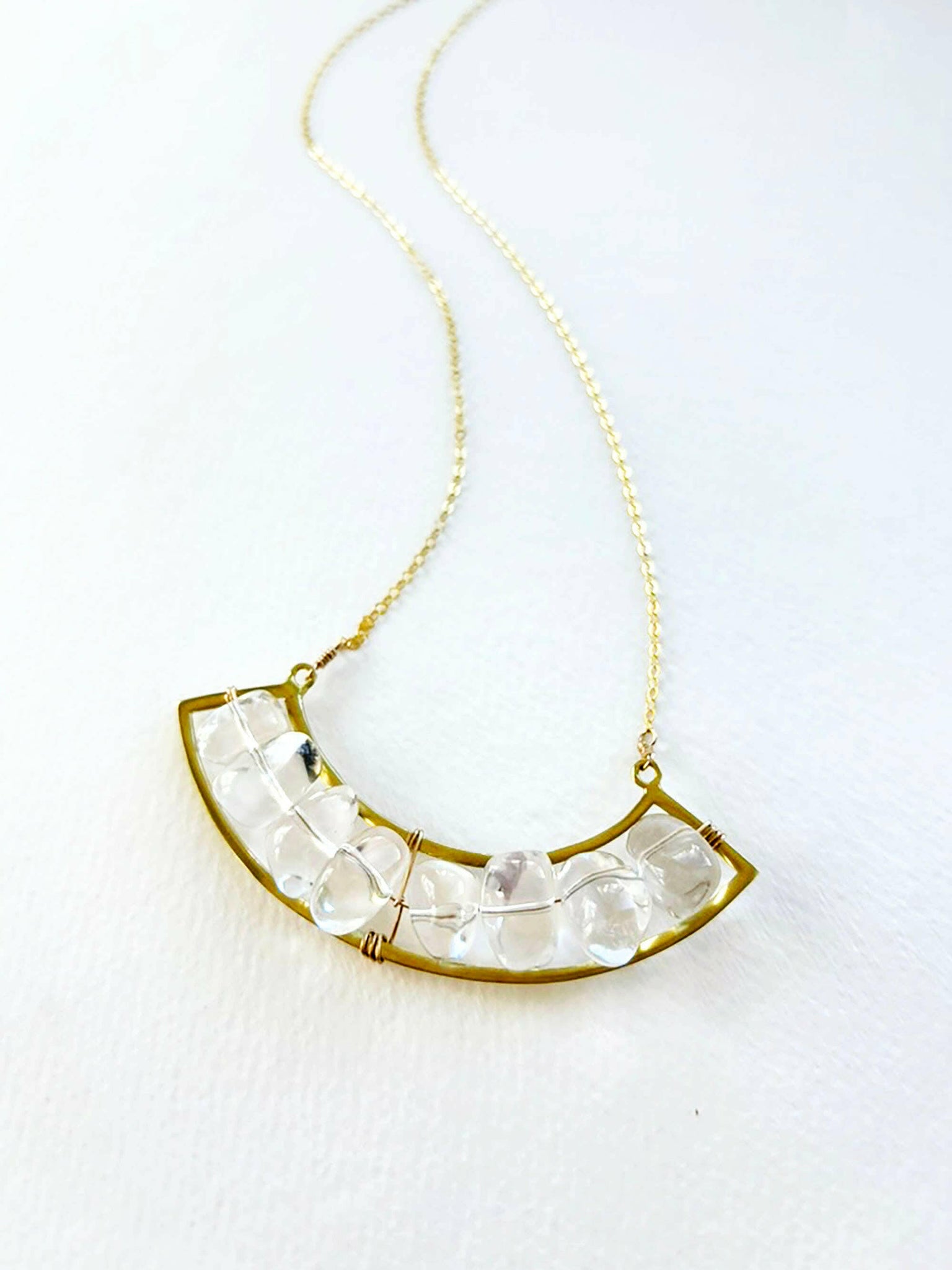 This quartz statement necklace is a bold and eye-catching piece of jewelry that combines the allure of bohemian style with the stunning beauty of quartz crystals. The statement necklace style adds a touch of natural beauty and bohemian flair to any look.