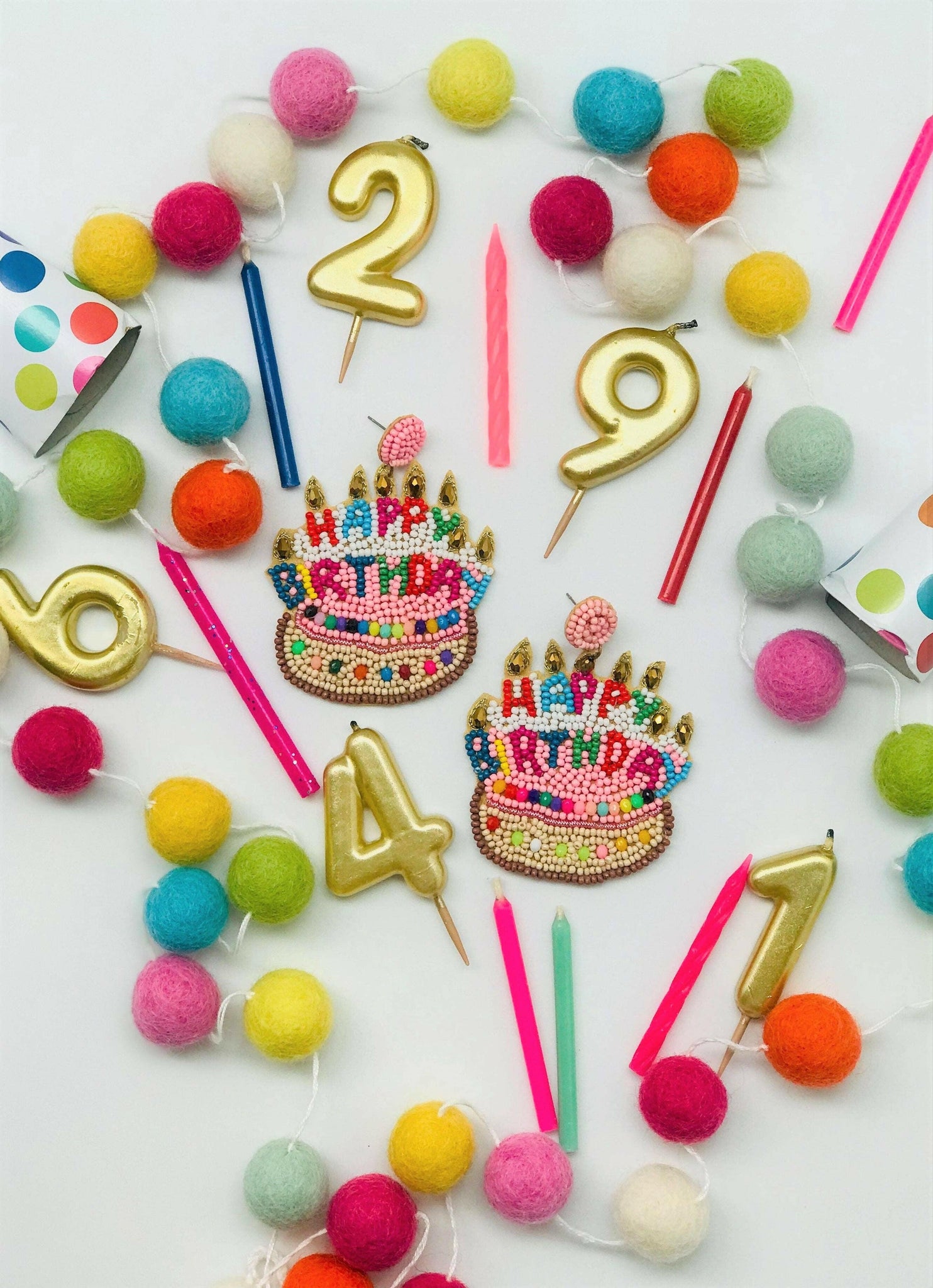 This earring is a customer favorite! We love all of the bright, happy colors on this Birthday Cake earring. It is embellished with candles and on a post back. It will definitely be the perfect earring for your birthday celebration.