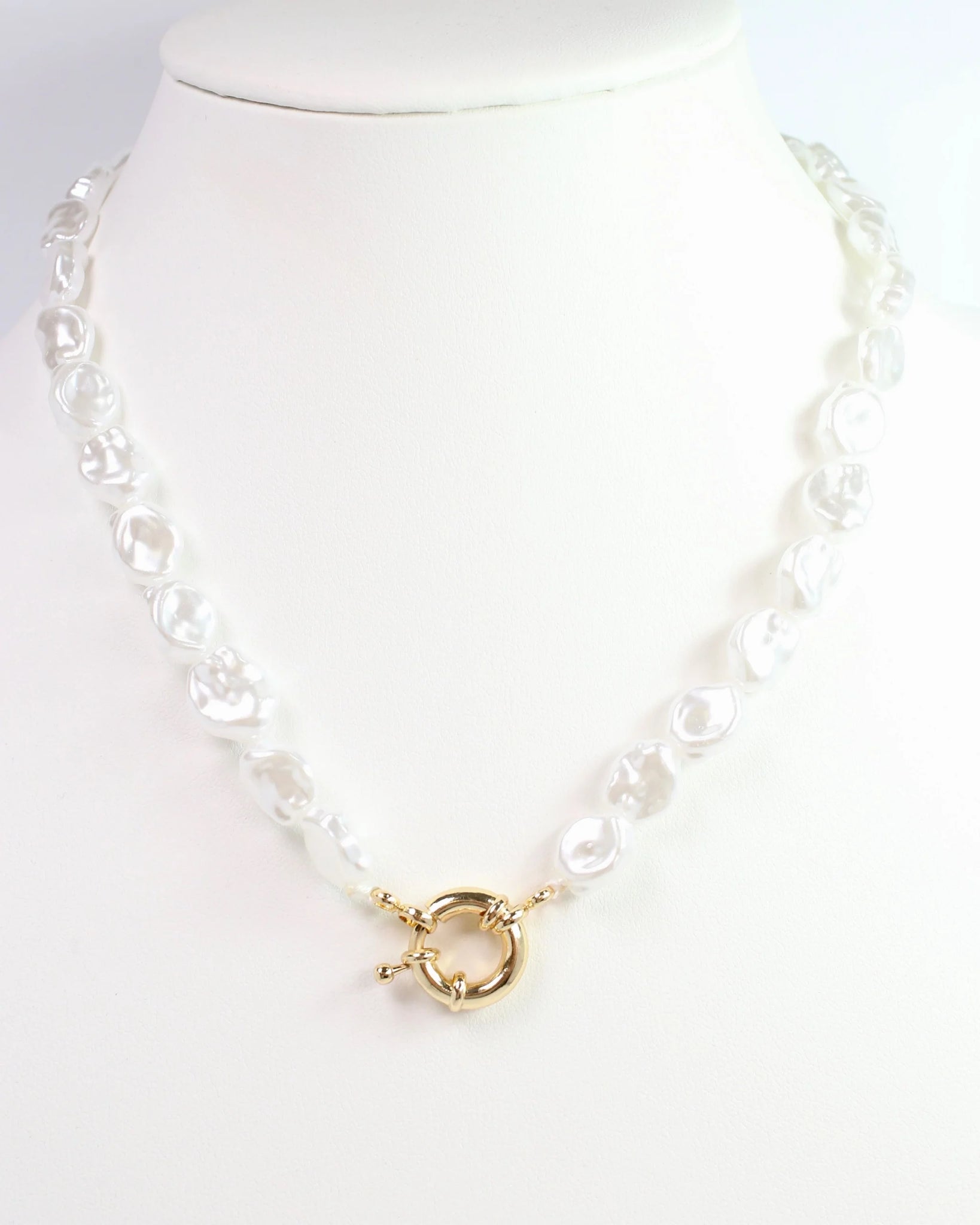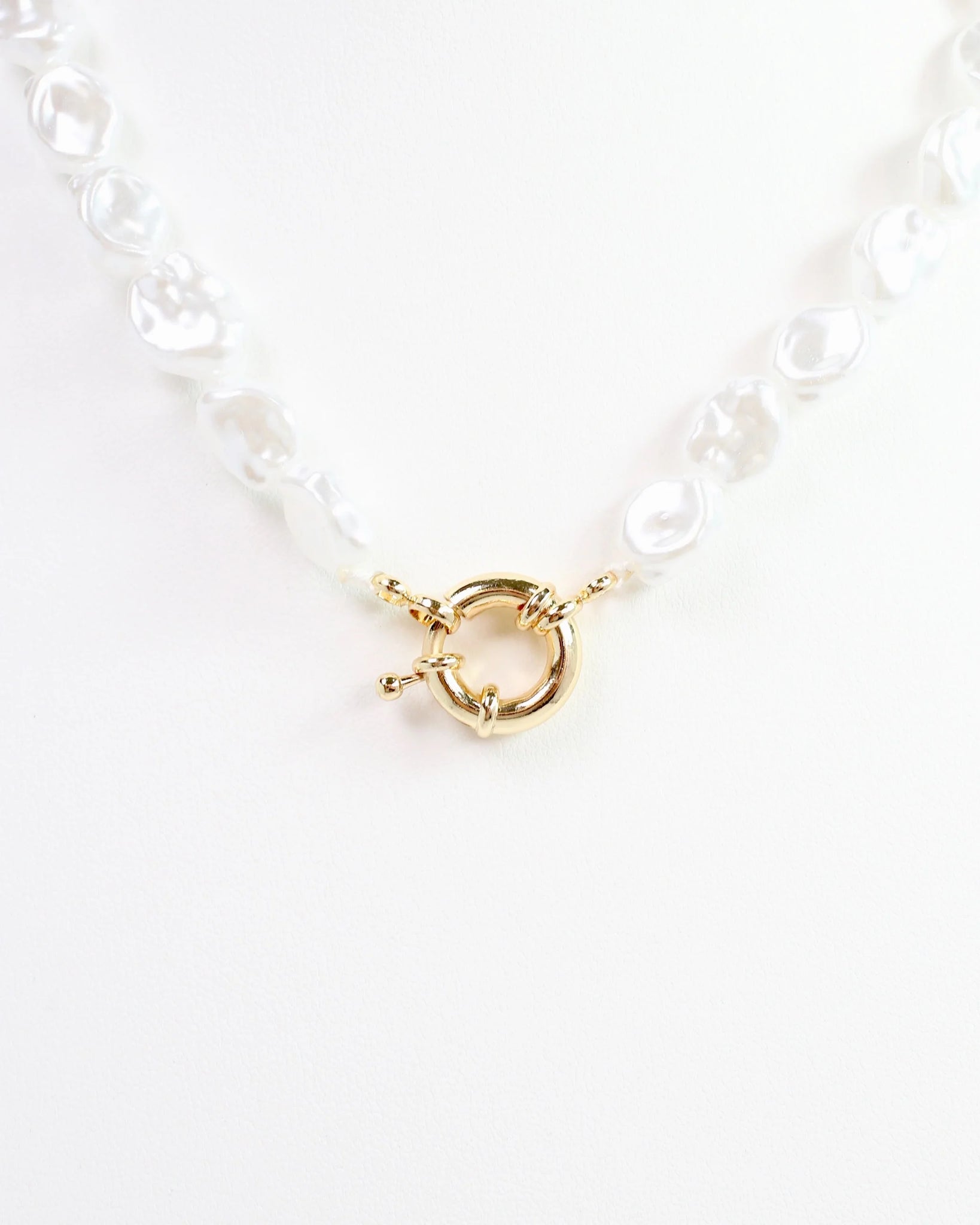 Elevate any outfit with the Juliet Baroque Pearl Necklace. Its stunning natural-looking pearls and versatile gold toggle clasp can be worn in the front or back. Add a charm or pendant for a personal touch.