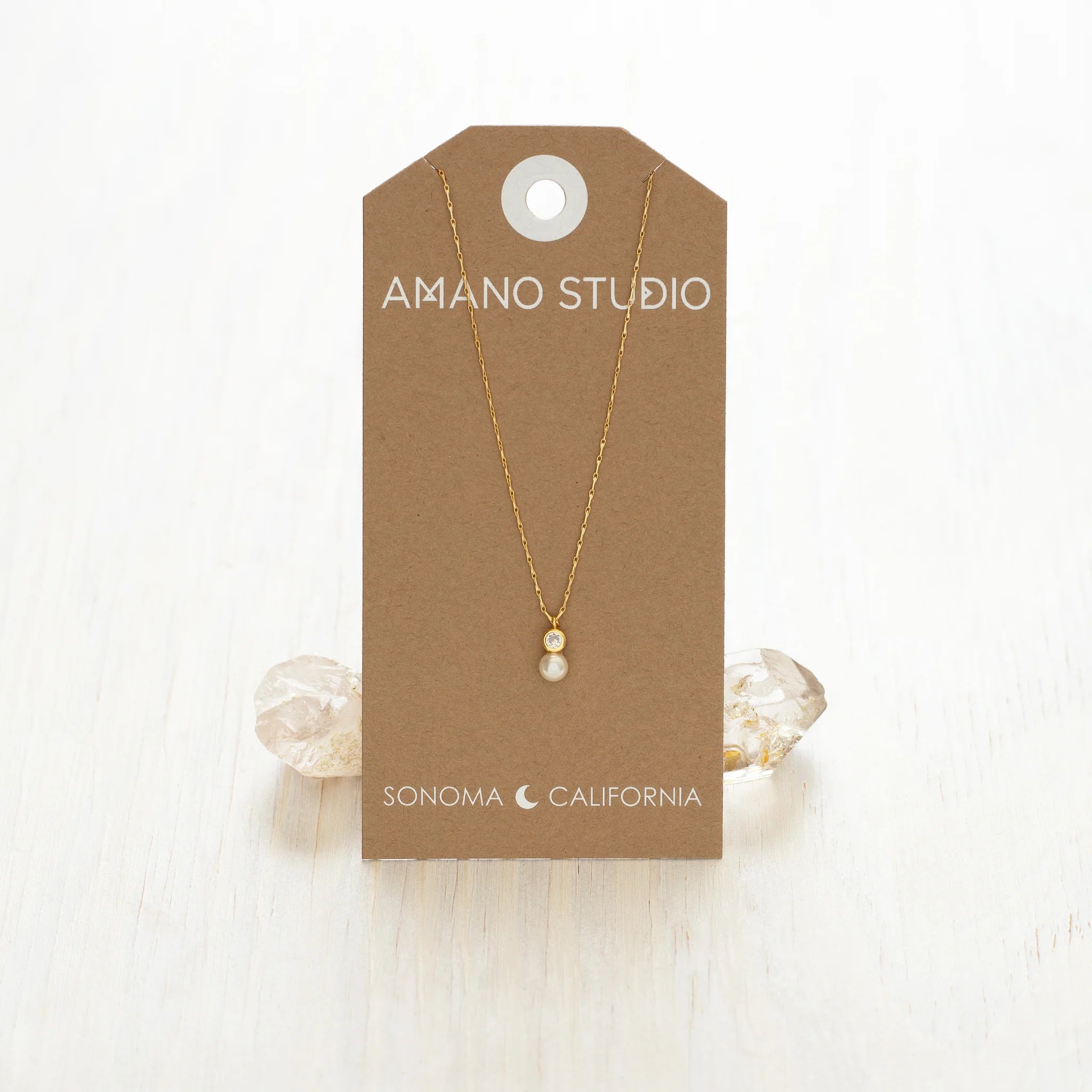 Sweet pearl and Czech crystal pendant. Pretty and demure, with an elegant flair.