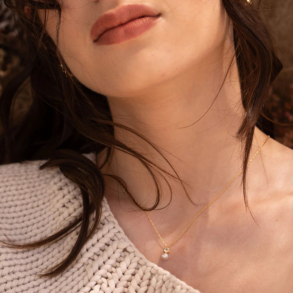 Made of synthetic pearls and 14k gold plated brass + coated to resist tarnish and create a hypoallergenic surface.