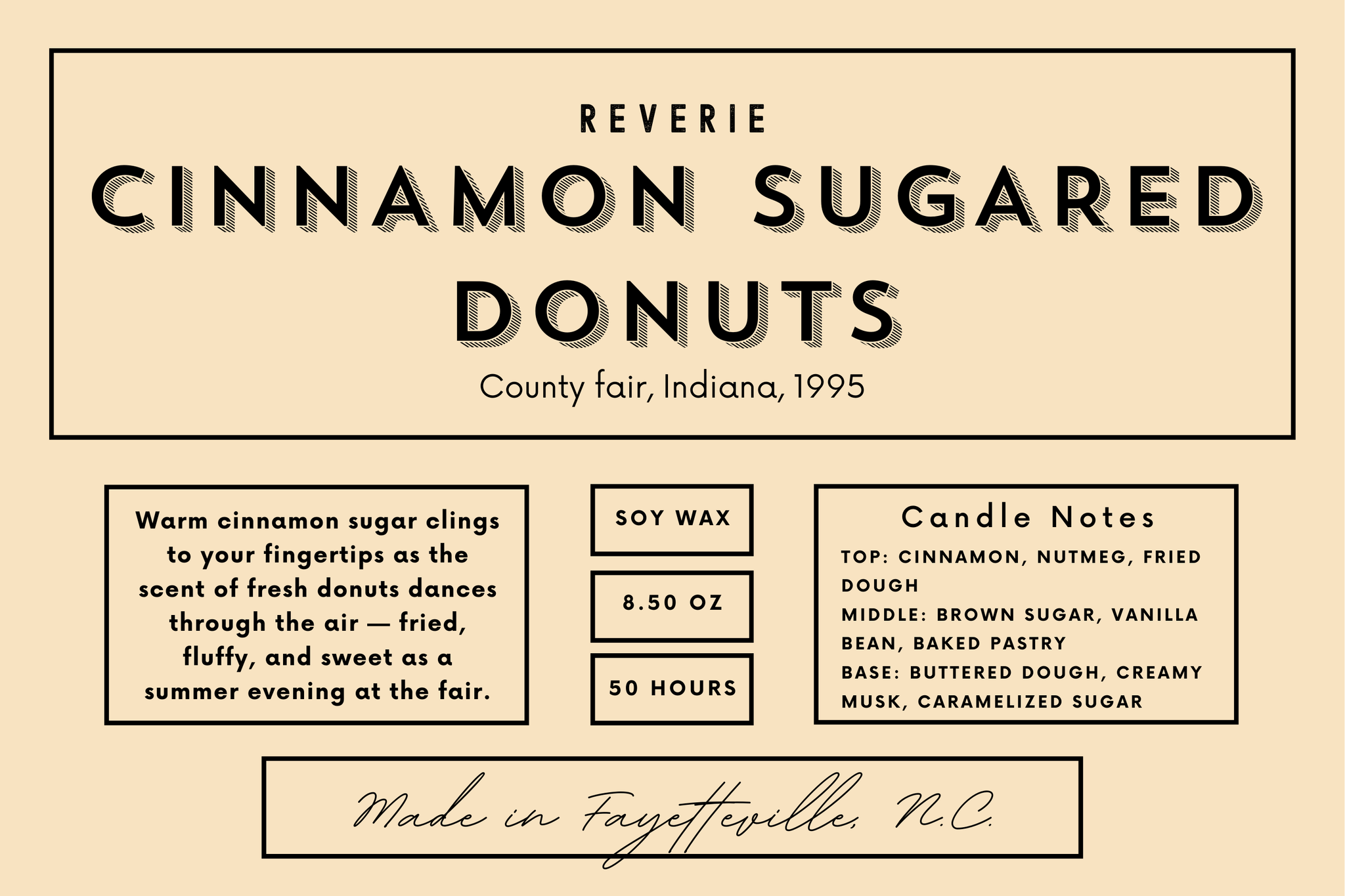 Warm cinnamon sugar clings to your fingertips as the scent of fresh donuts dances through the air — fried, fluffy, and sweet as a summer evening at the fair. With rich top notes of cinnamon, nutmeg, and golden fried dough, this nostalgic scent is anchored by warm brown sugar, creamy vanilla bean, and soft pastry accords. Finished with cozy notes of buttered dough, musky cream, and caramelized sugar, it’s a joyful throwback to funnel cake fingers and Ferris wheel skies.