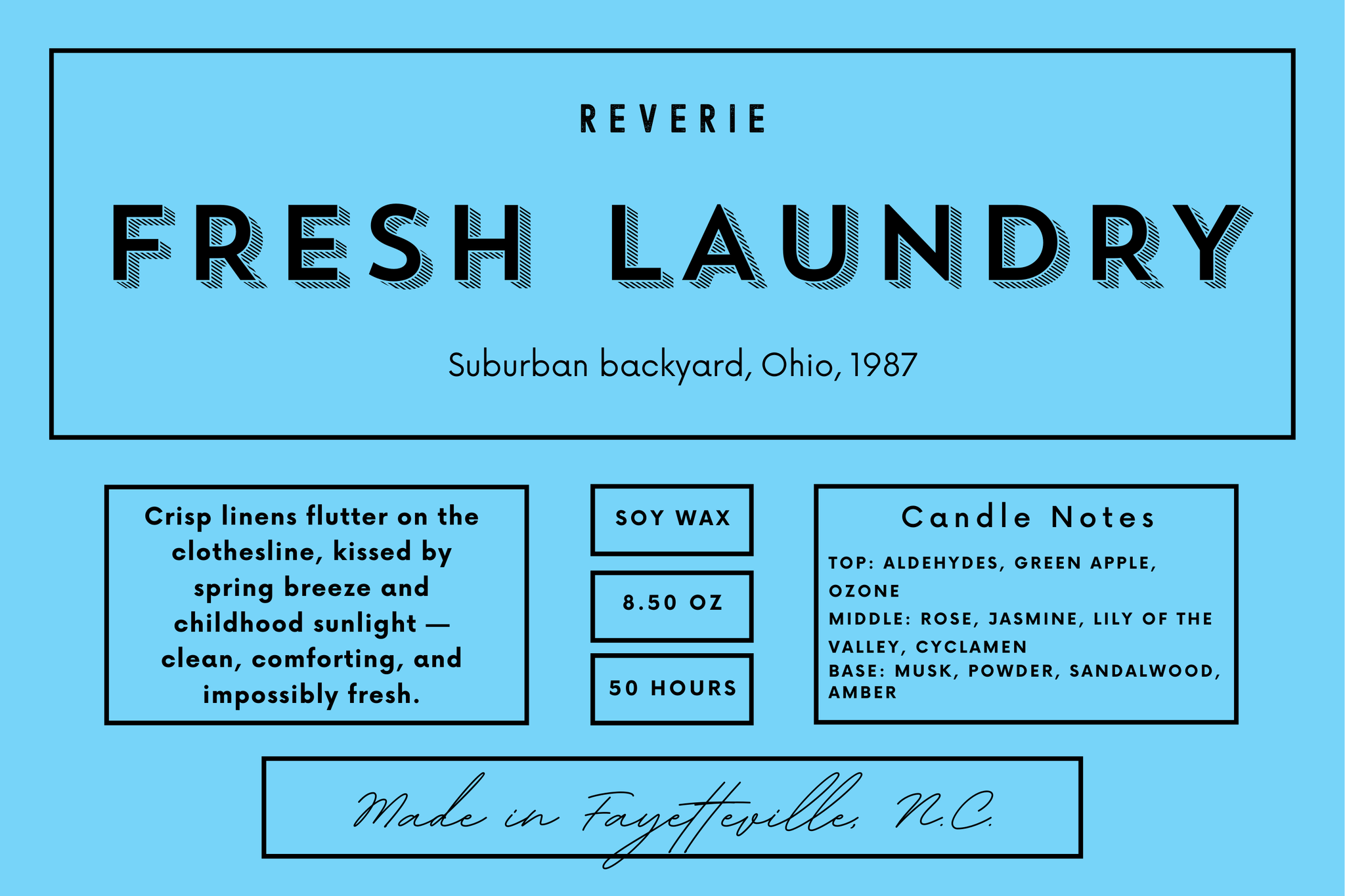 Crisp linens flutter on the clothesline, kissed by spring breeze and childhood sunlight—clean, comforting, and impossibly fresh. Inspired by the iconic suburban ritual of line-drying laundry on a golden 1987 afternoon, this scent captures that nostalgic “just folded” fragrance. Hand-poured in Fayetteville, NC, this 100% soy wax candle is vegan, phthalate-free, and made to elevate your everyday routine with a nostalgic wink.