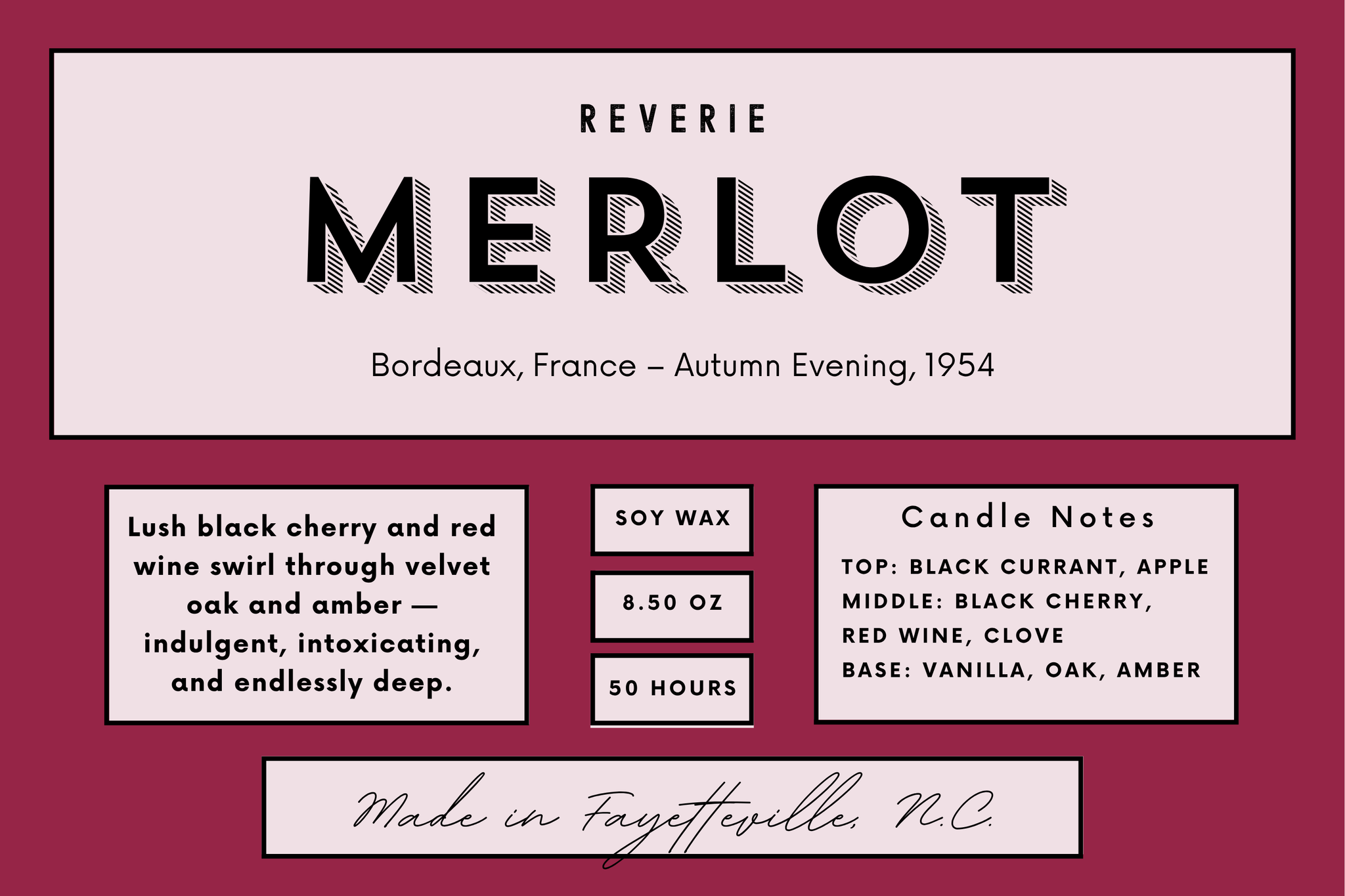 Hand-poured in our Fayetteville, North Carolina store using 100% soy wax and premium, clean fragrance oils, Merlotbrings the elegance of wine country into your home. A perfect gift for wine lovers, romantics, and candle connoisseurs alike.