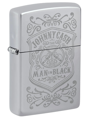 Johnny Cash, The Man in Black, Engraved - High Polish Chrome Zippo Lighter