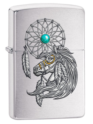 Native American Horse and Dreamcatcher - Brushed Chrome Zippo Lighter