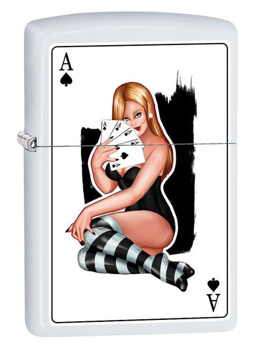 Sexy Pin-Up Girl, Four Ace of Spades - White Matte Zippo Lighter